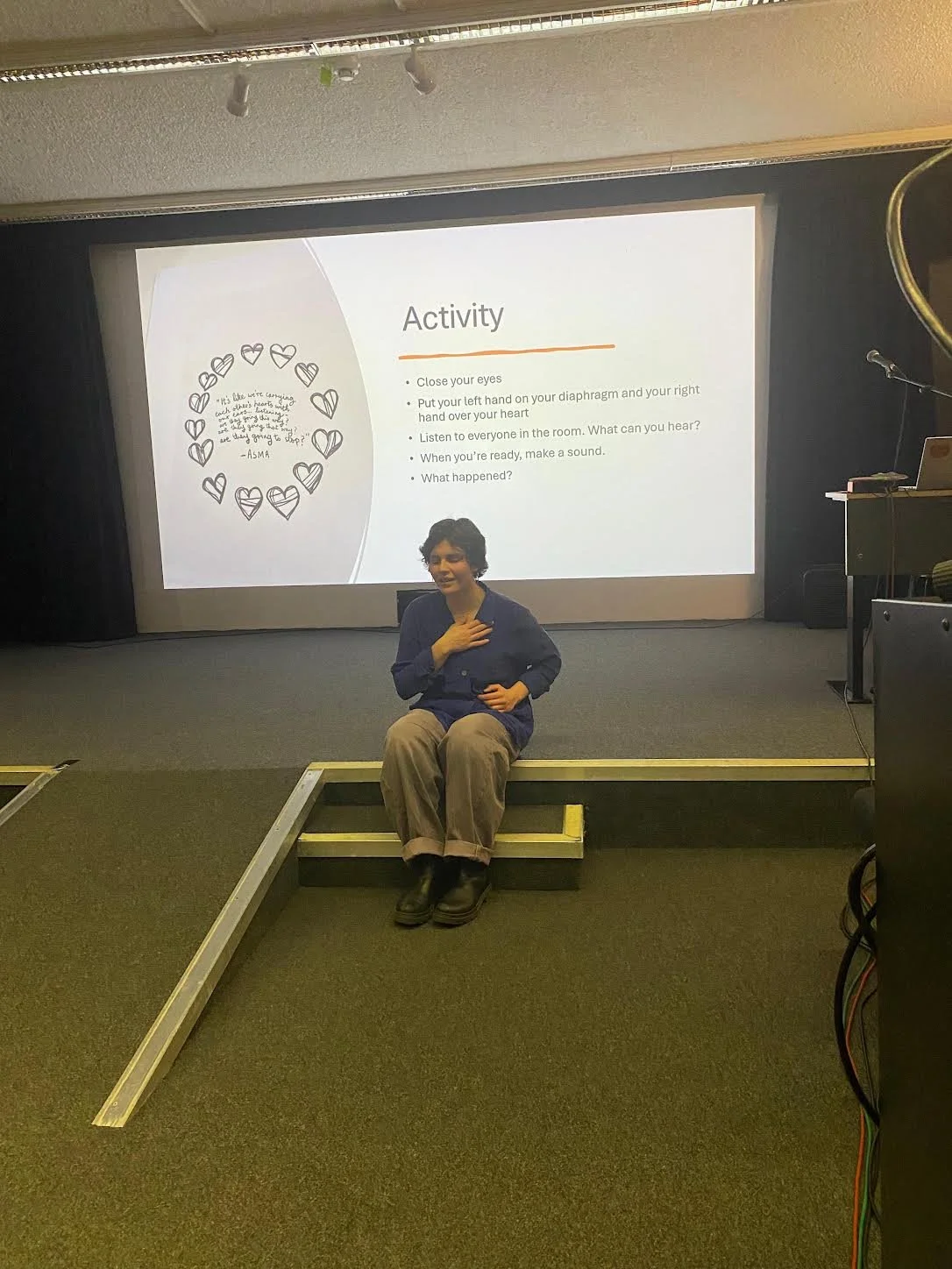 I work as a creative facilitator, creating spaces and opportunities for people to come together and make music and sound. I have been leading music workshops since 2016, and have done so at venues and spaces all over the UK including schools, hospitals, care homes, and community and arts organisations. I love creating invitations for people to improvise, find their voice, and experience moments of connection. I also use creative facilitation as part of my practice as a researcher.